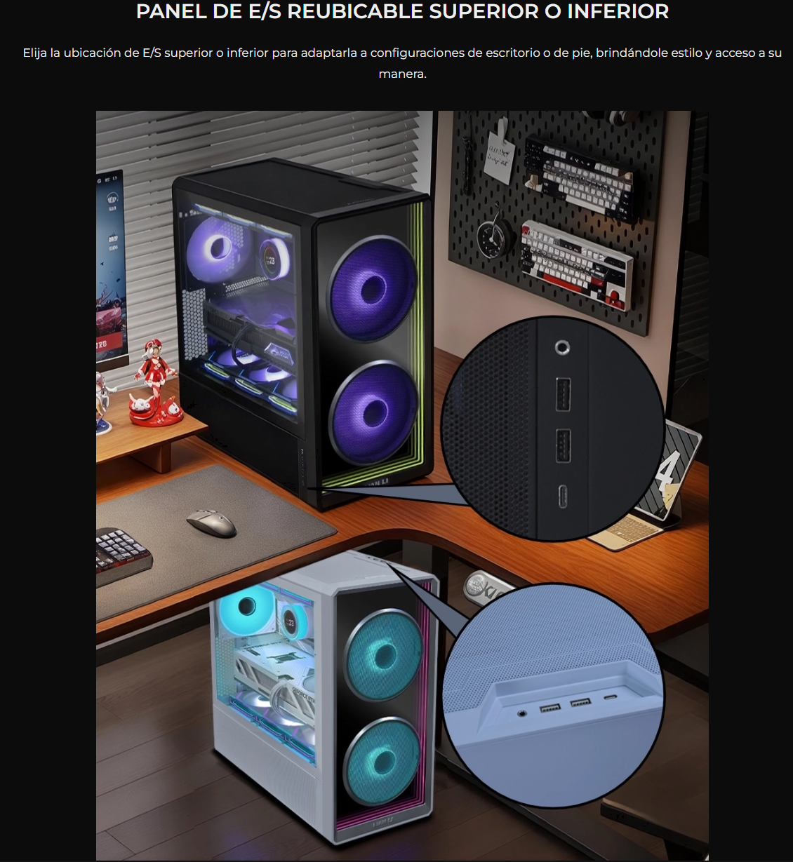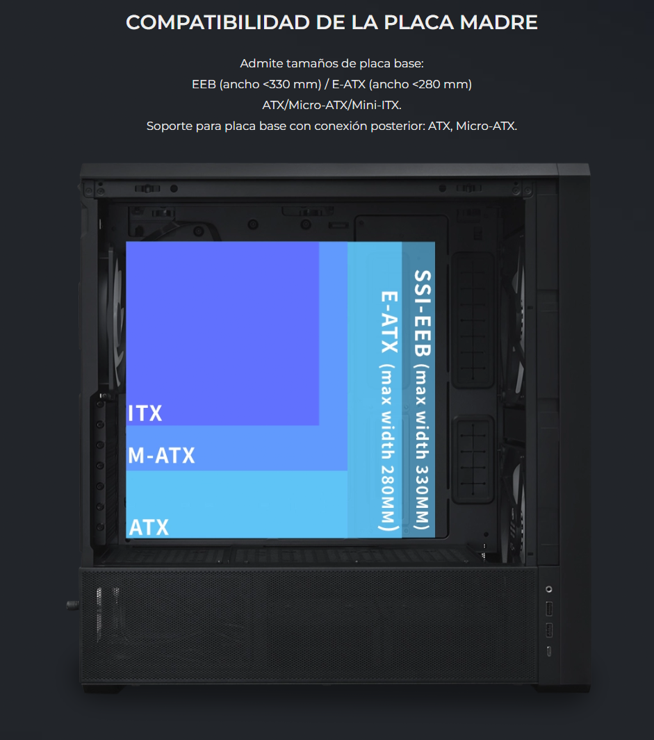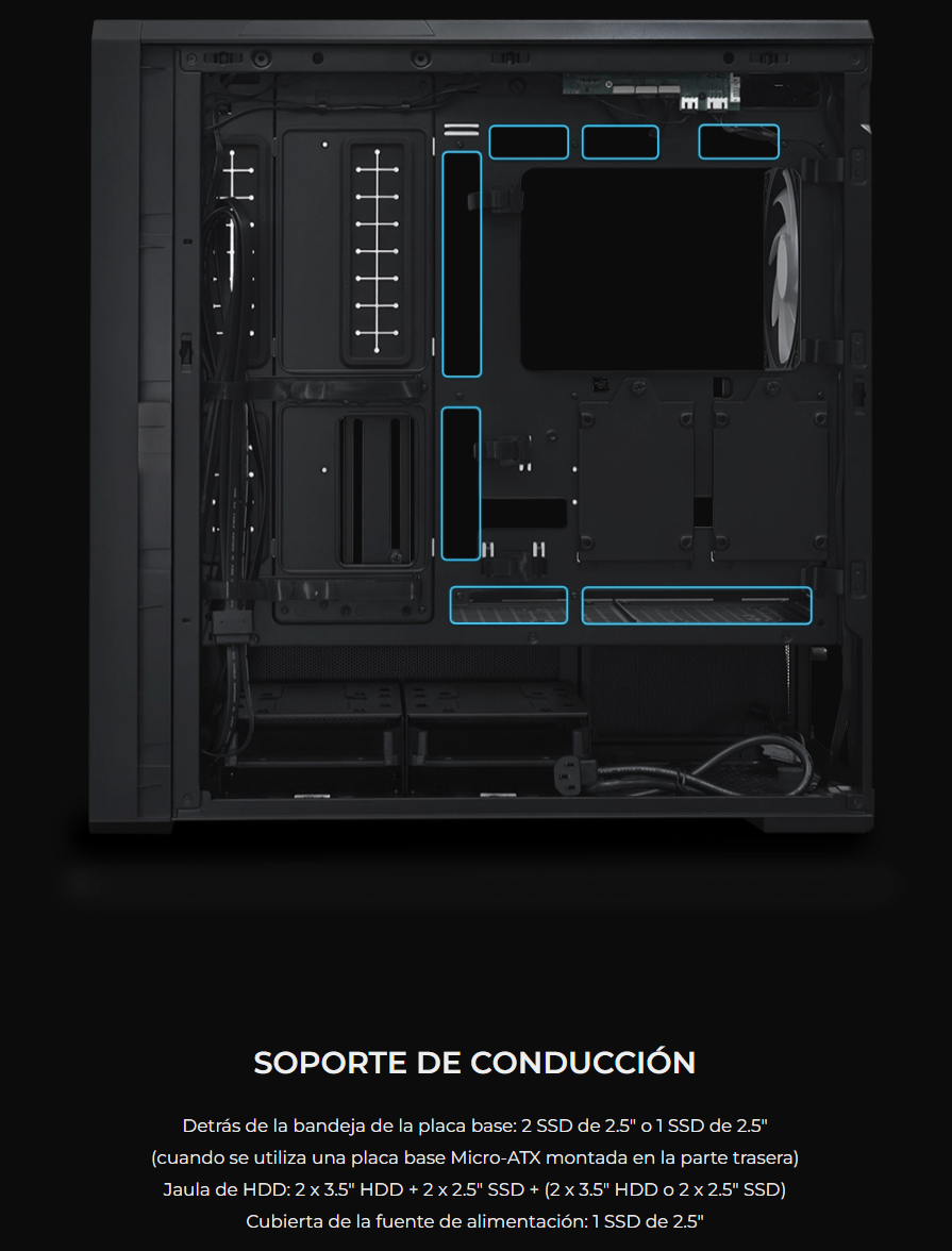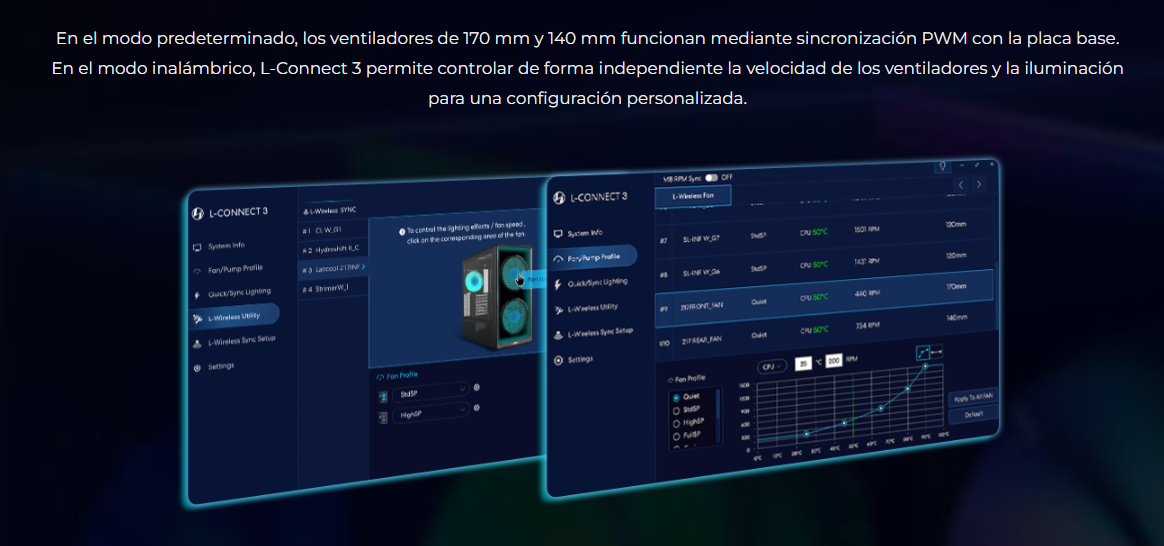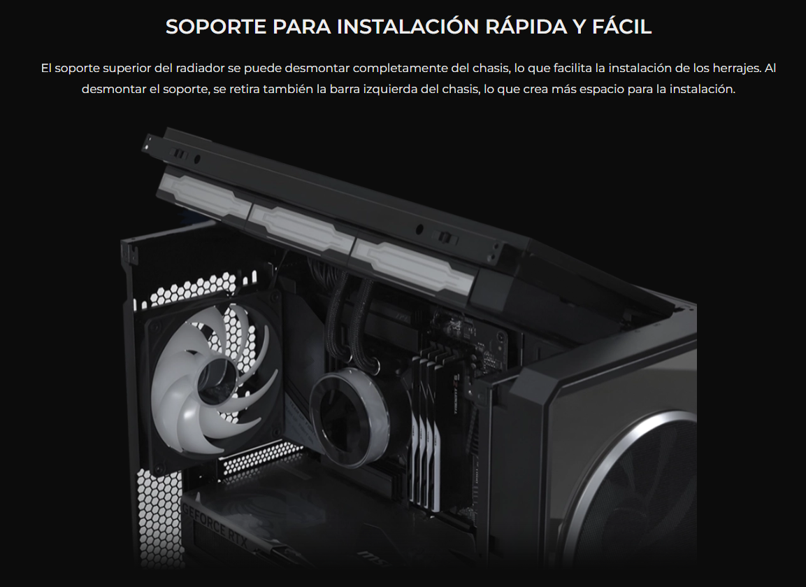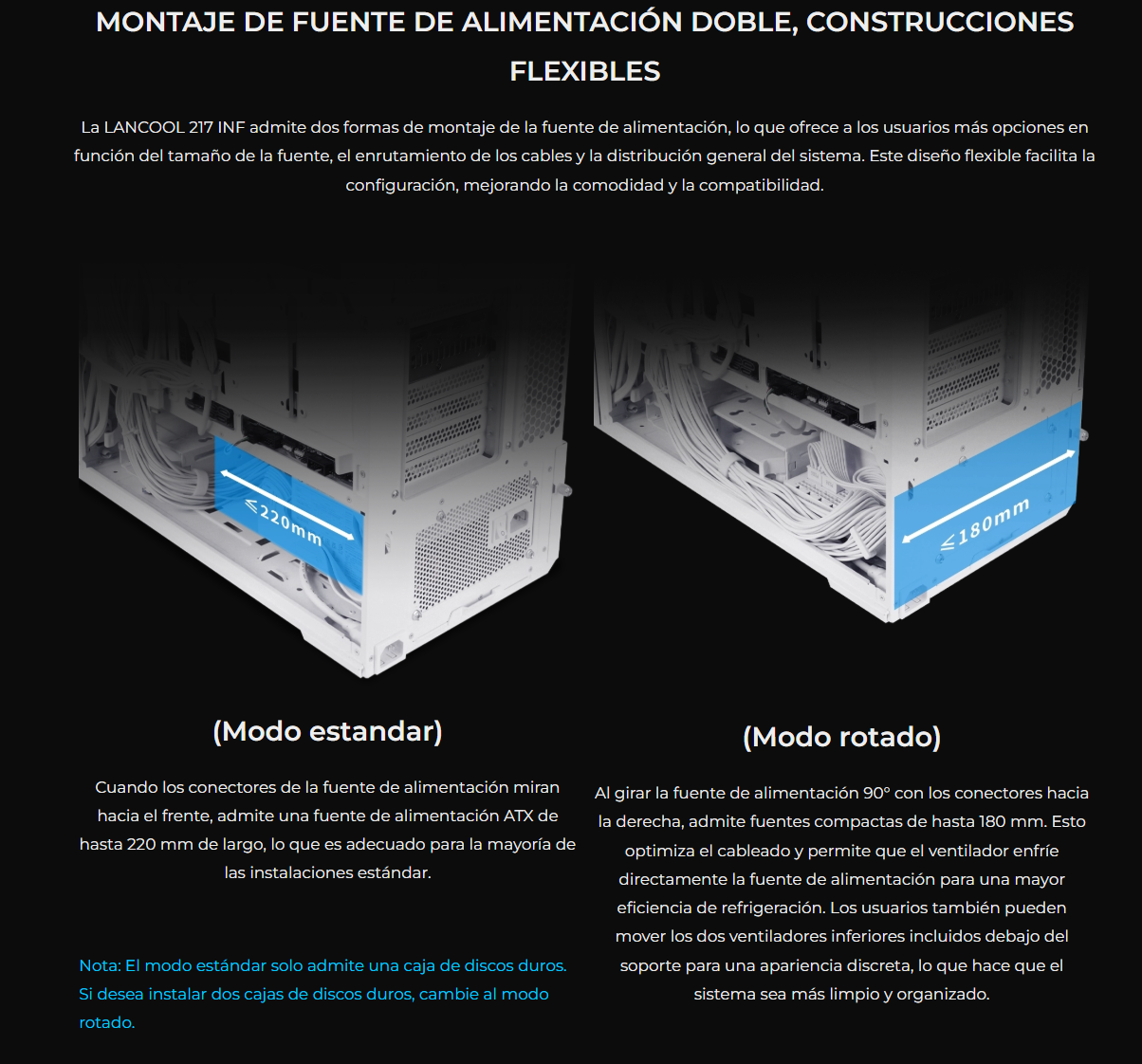 El LANCOOL 217 INF continúa con nuestro diseño característico de flujo de aire de alta eficiencia con un panel frontal de espejo infinito para un efecto visual impactante, mientras que las aberturas dobles de vidrio templado garantizan un flujo de aire amplio.