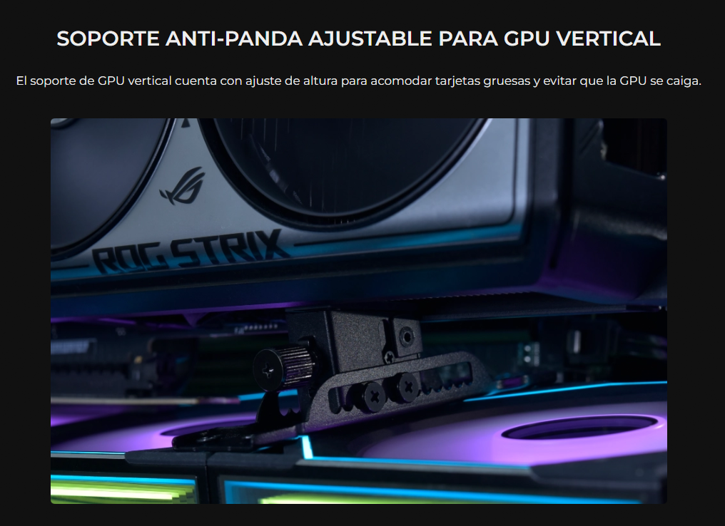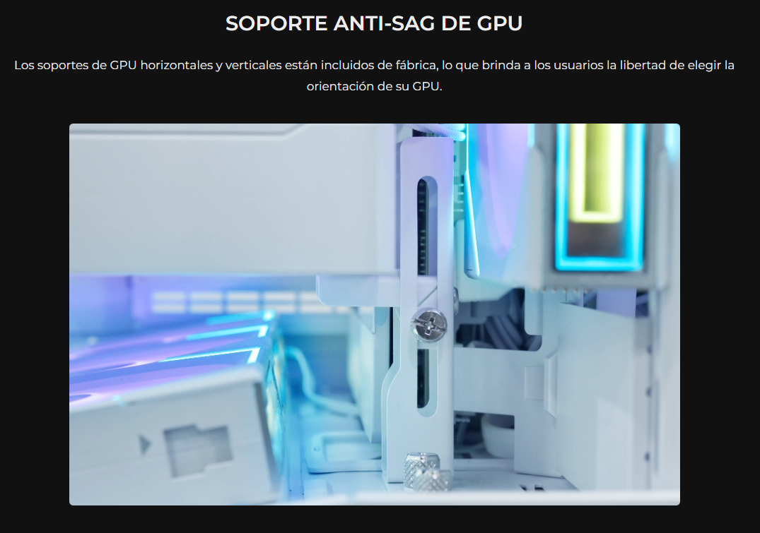 • Incluye soportes anti-hundimiento de GPU horizontales y verticales para soportar GPU pesadas